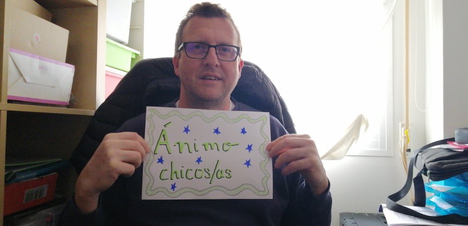 Mirad la foto que me han hecho. Estos días me gustaría que hiciésemos un mensaje para animar a los demás niños de clase. Vosotros podéis hacer lo mismo con algún mensaje de ánimo con vuestra foto. Podéis incluir la familia si quieren.